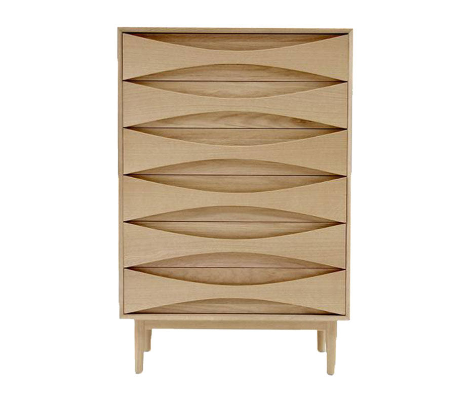 The forceful design with its curves and counter curves displays a skillfully orchestrated symmetry. The hollowed sections create an interplay of light and shadow on the furniture's facade.