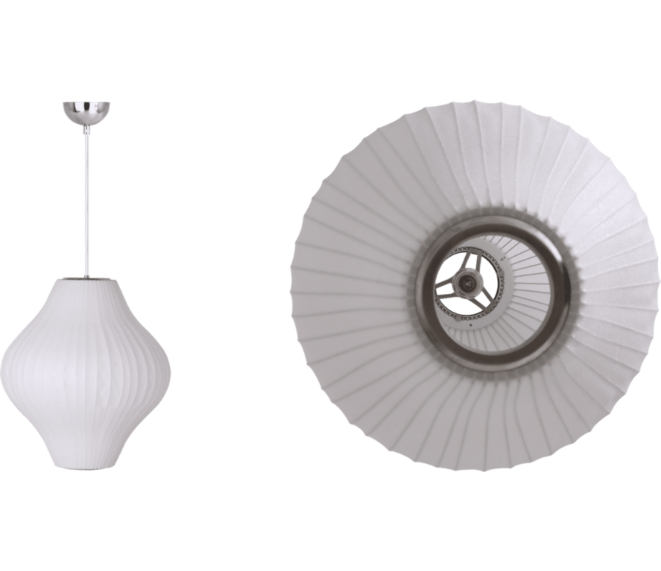 Designed in 1952, the Bubble Style Lamp Pear is styled with a wire cage pattern using a steel wire mesh then a stretched plastic shade is wrapped around the spherical bubble. This is made from special material to ensure it emits subdued light and reduces glare. It will surely add a touch of softness and luminosity to the interiors.
