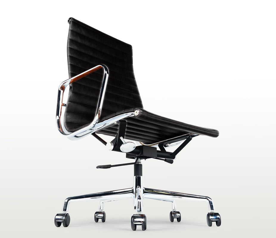 The whole seat tilts, swivels, and has a height adjustment mechanism. Mounted on a chrome-plated base, this chair allows maximum movement and gives maximum comfort.