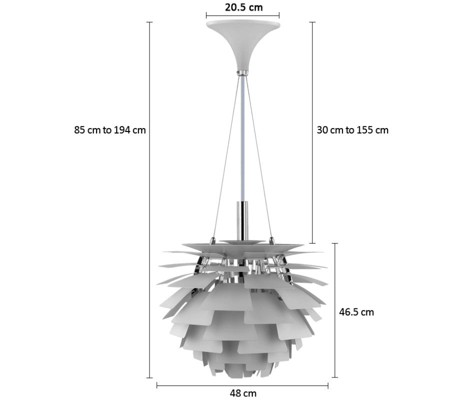 It was designed in 1958 for the Langelinie Pavillonen restaurant in Copenhagen, where it still hangs today. It has a world–famous unique sculptural aesthetic and is viewed internationally as an iconic design.