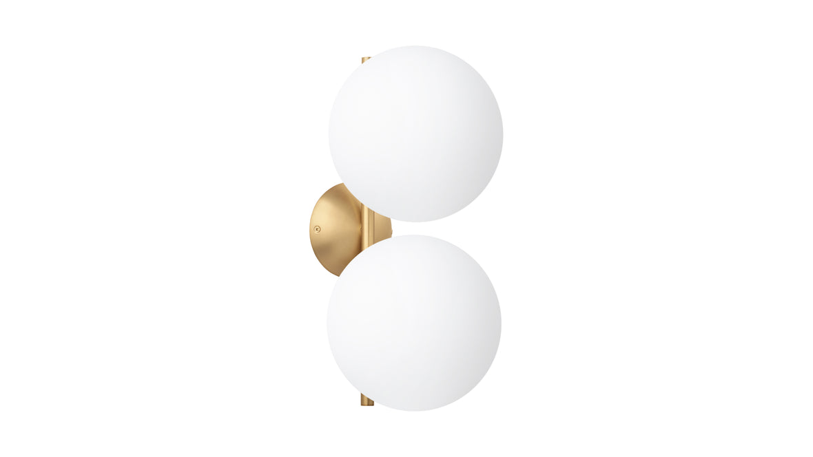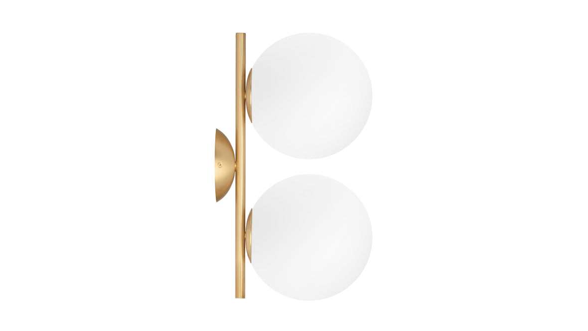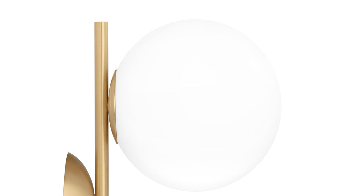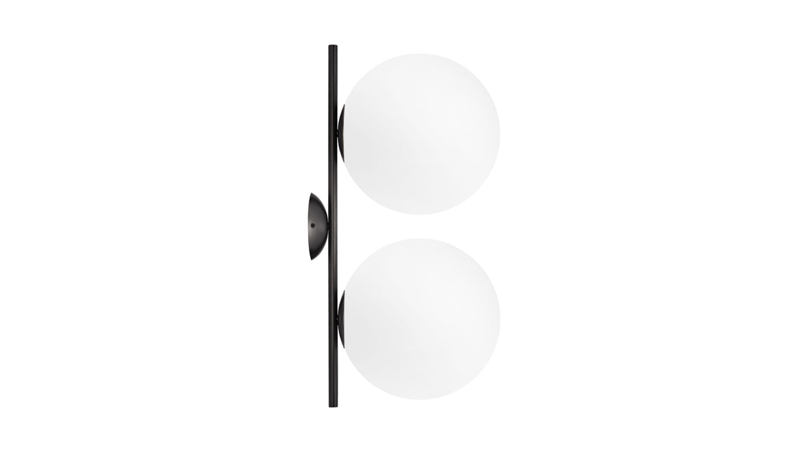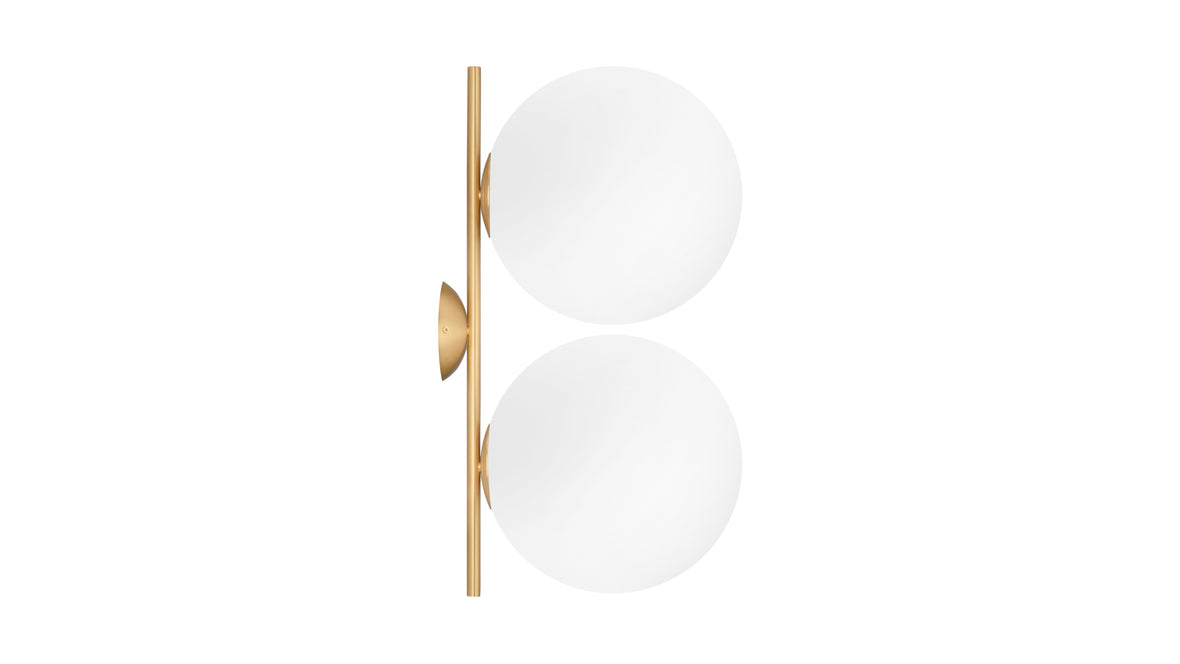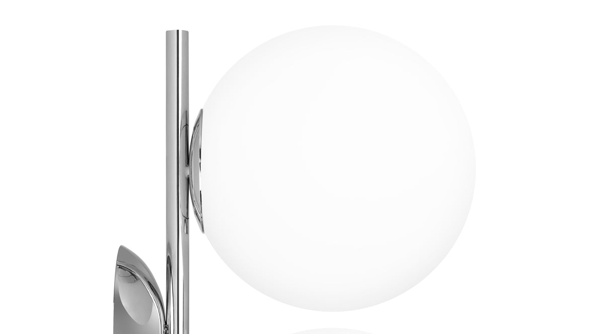 The Iris Double Wall & Ceiling Light epitomizes enduring charm and utility. Its slender metal stem graciously cradles a captivating spherical opal glass diffuser, conjuring a spellbinding floating effect. Casting a gentle, diffused radiance, this double wall & ceiling light imparts an air of refinement to any indoor setting, establishing itself as a resplendent focal point in your home or office. This designer floor lamp can be situated in various indoor spaces, offering a warm and diffused glow.