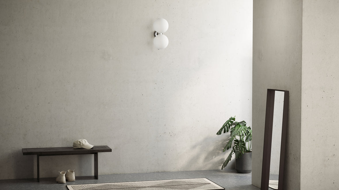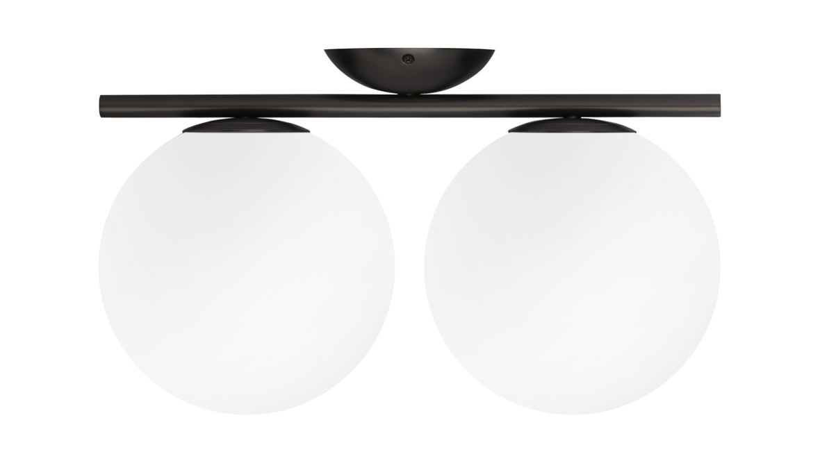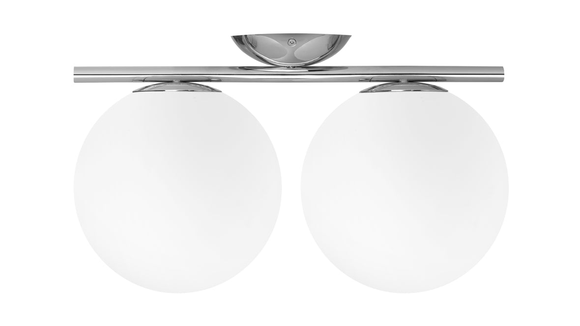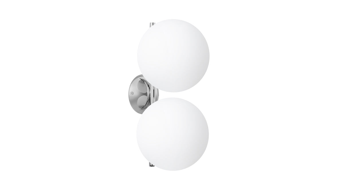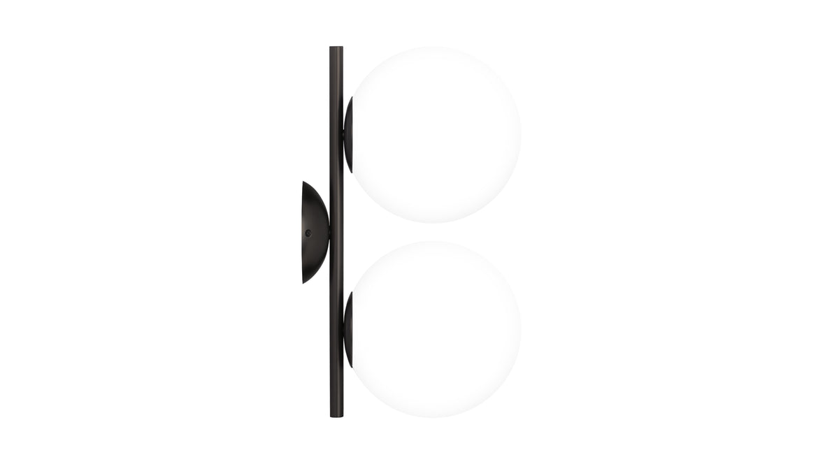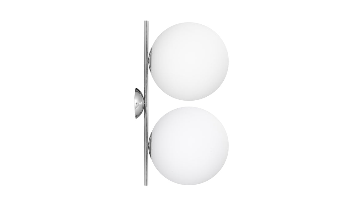 Experience the art of illumination with the Iris Double Wall & Ceiling Light. Its delicate balance of form and function showcases a captivating opal glass diffuser perched atop a slim metal stem. The spherical design creates an alluring floating illusion, infusing your surroundings with a warm and inviting ambiance. The Iris Double Wall & Ceiling Light is a true masterpiece, adding a touch of enchantment to your interior spaces.