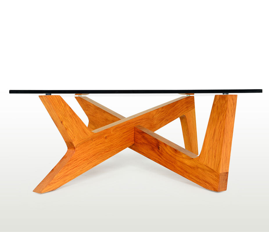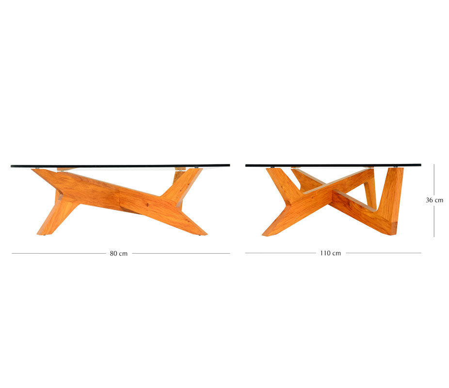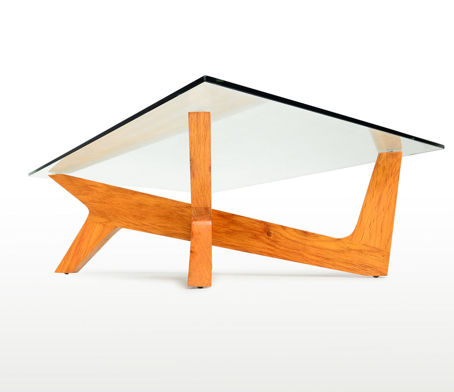 The solid wooden base and tempered-glass top create a stunning marriage of manmade and natural materials for a contemporary twist.