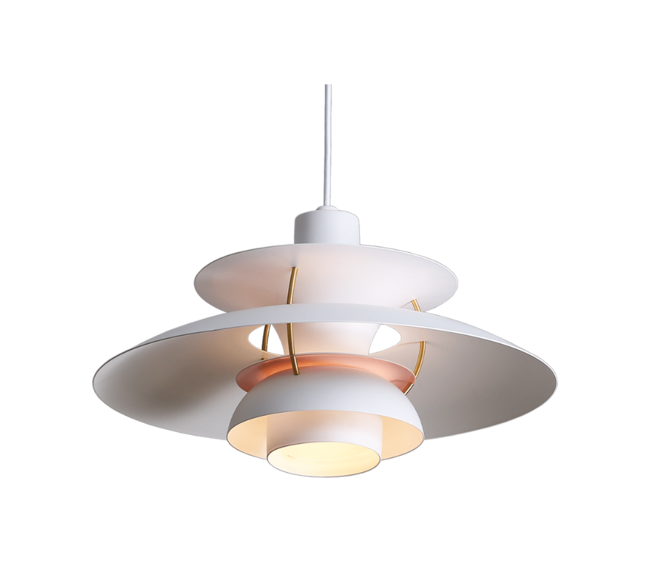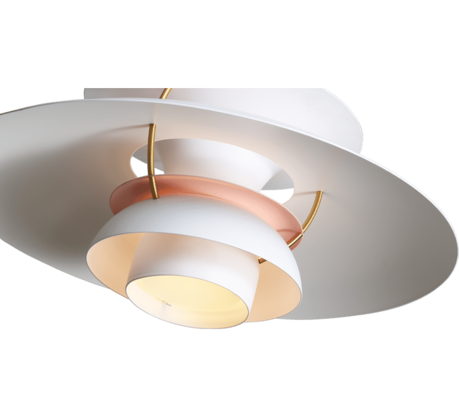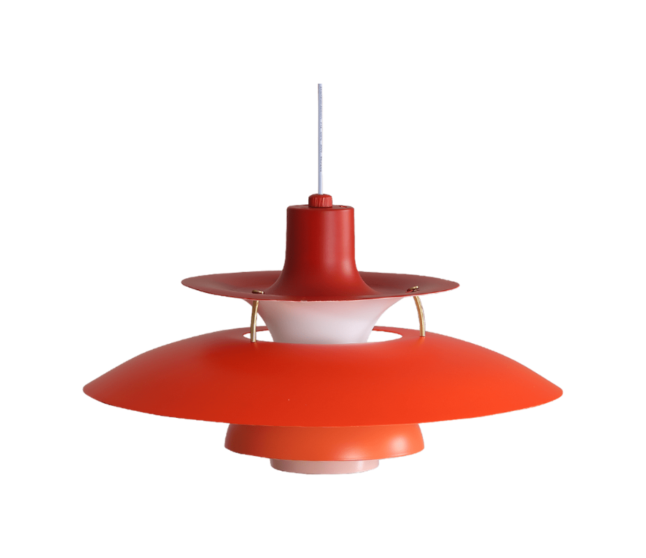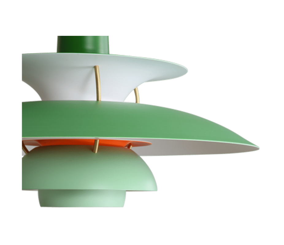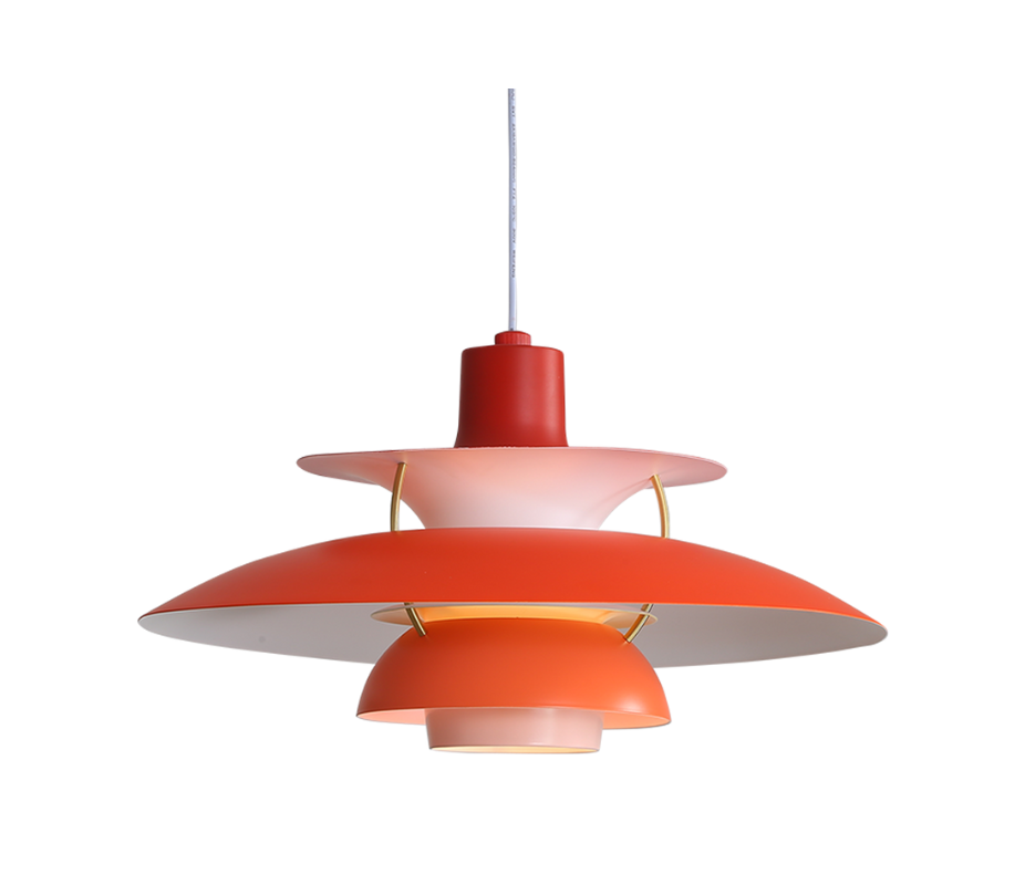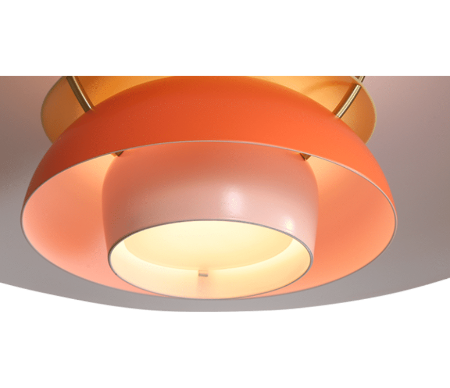Designed in 1958 by Poul Henningsen combines industrial chic with a touch of 20th-century space-age retro style. A lamp comprised of layers of aluminum in varying sizes, shapes, and vibrant colors that direct the light both vertically and horizontally, the Henningsen Style Pendant Lamp was originally designed by Poul Henningsen in his ground-breaking Henningsen Lamps series which started in 1925.
