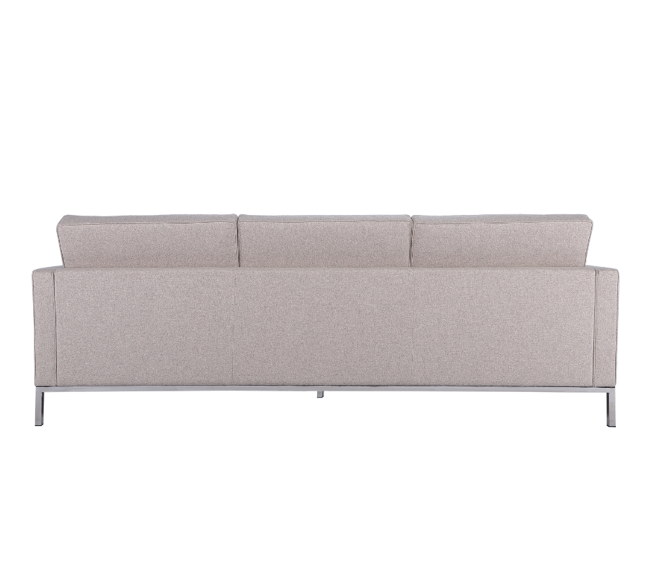 The clean, angular profile of the design reflects the perfectionism of modern design. A solid inner frame made of wood and stainless steel base ensures a lasting build.
