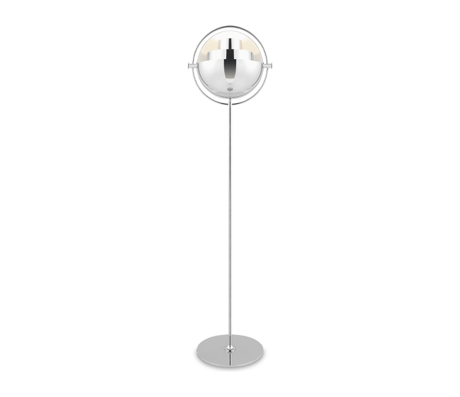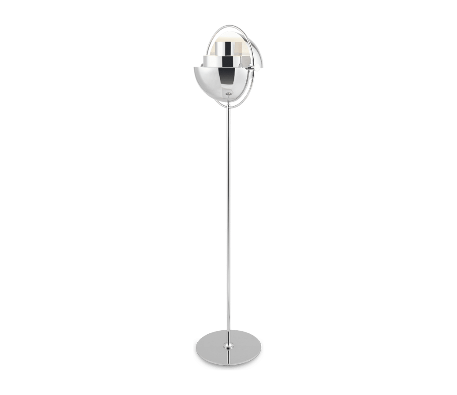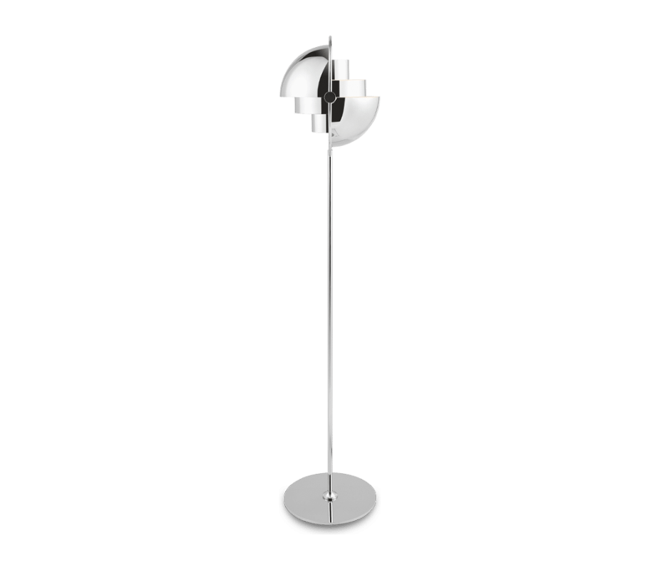ICONIC GEOMETRIC HARMONYIn 1972, the Multi-Lite Floor Lamp emerged as a unique creation, notable for its fusion of three geometric shapes that distinguished it from contemporary Danish designs. The inner cylinders direct light both upwards and downwards, while the adjustable quarter-spheres scatter light, producing a soft, multidirectional illumination. An outer ring holds everything in place and forms a remarkable halo silhouette for the Multi-Lite.