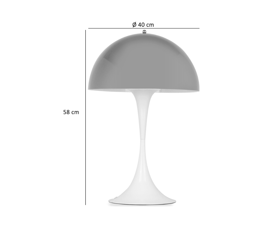 The Panthella Style Table Lamp is designed to emit a soft and comfortable diffused light. The hemispherical shade form directs light downwards while the shade material allows light to gently diffuse and illuminate the surroundings. Panthella is considered a classic of Danish design and the trumpet-like base contributes to a beautiful distribution of light and a well-balanced form.