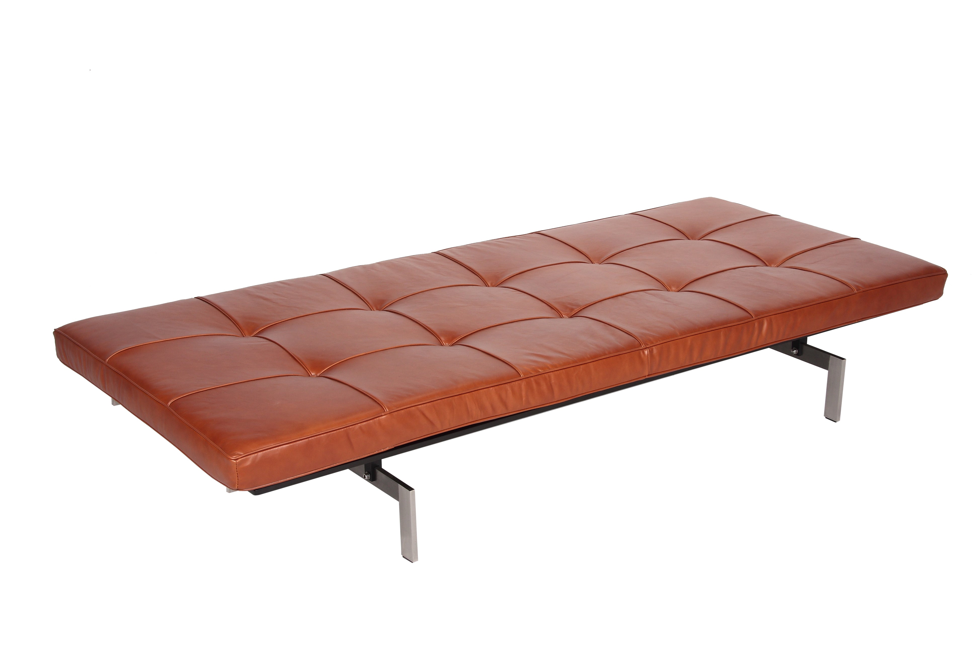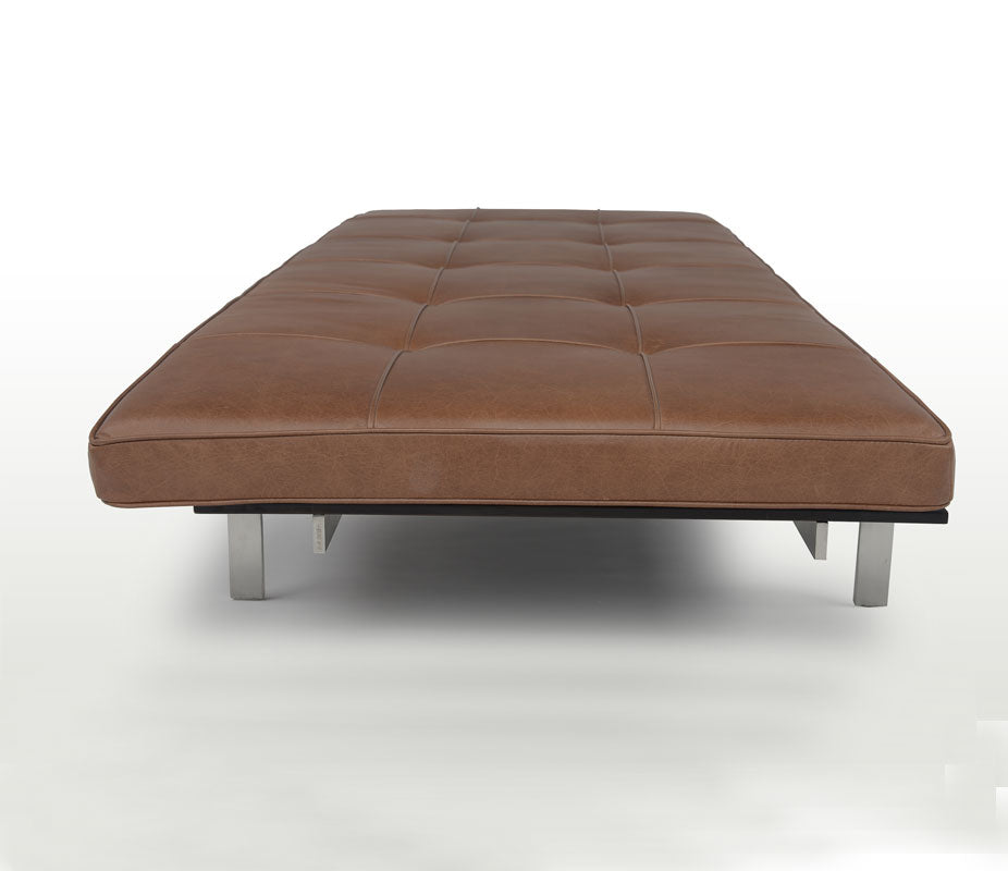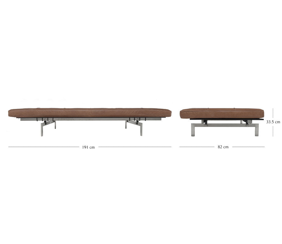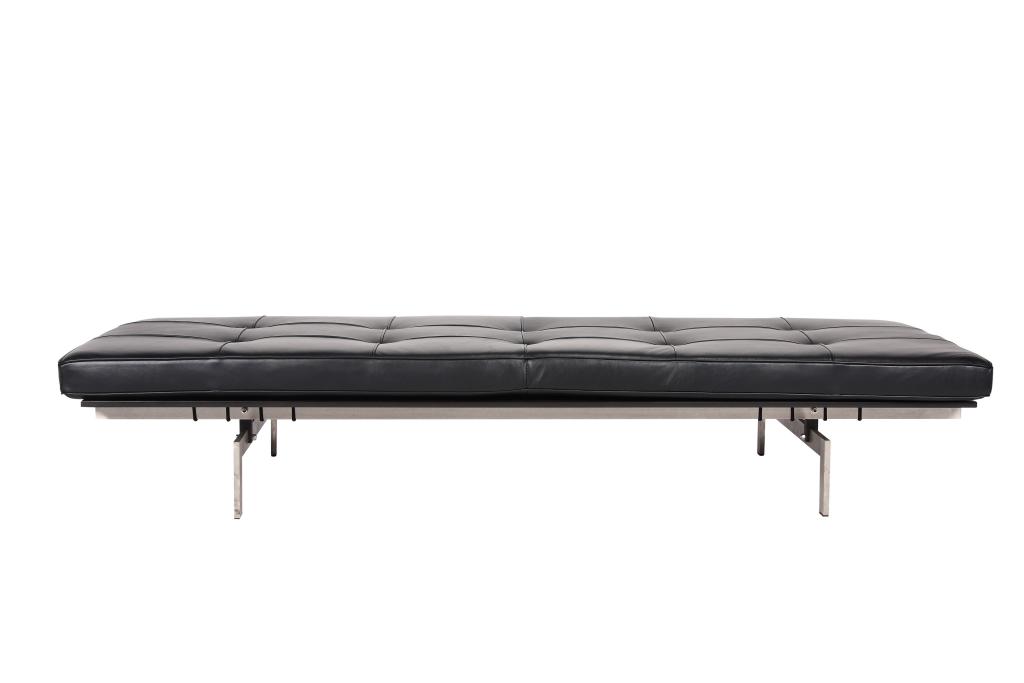 The day bed is a clear illustration of Poul Kjaerholm's method of refining historical models and distilling them down to the essence and demonstrating his superior ability to balance construction and choice of materials.