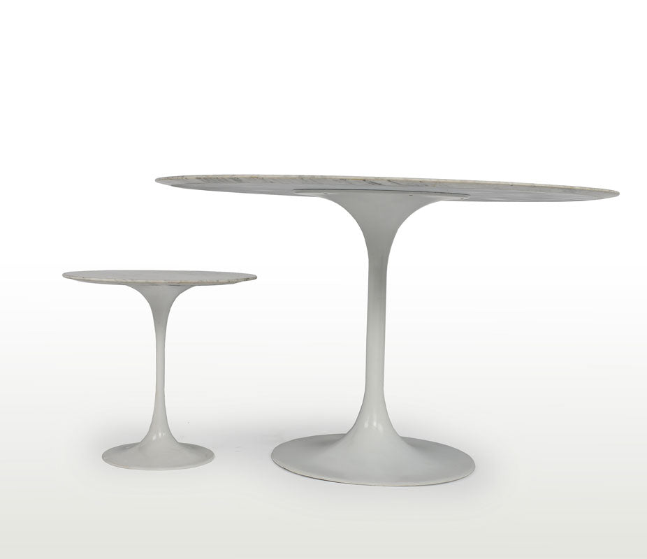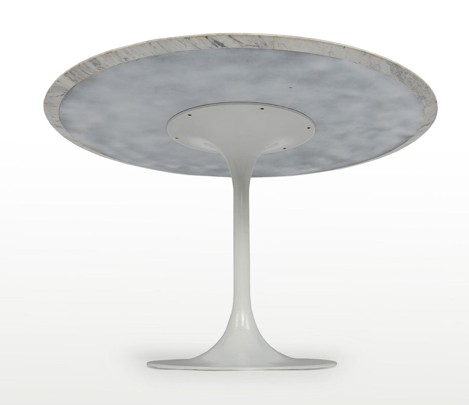 In his purist approach to design, Finnish-born Eero Saarinen sought out the essential idea and reduced it to the most effective structural solution. "The underside of typical chairs and tables makes a confusing, unrestful world," explained Saarinen. "I wanted to clear up the slum of legs."